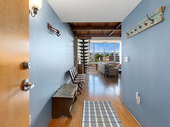 Experience the perfect balance of industrial design and modern comfort at 156 Porter in East Boston. This loft studio features an open-concept layout with high ceilings, exposed brick walls, and wooden beams, creating a striking industrial aesthetic. Floor-to-ceiling windows flood the space with natural light, beautifully complementing the rich wood flooring. The versatile upper loft area offers options as a bedroom, home office, or additional storage. Enjoy the common roof deck with stunning views of the Boston skyline, or relax in the rooftop clubroom, complete with a kitchen and TV. Conveniently located near Maverick Square, Logan Airport, the Blue Line, and a variety of shops and restaurants, this home offers both style and practicality in one of East Boston’s prime locations.