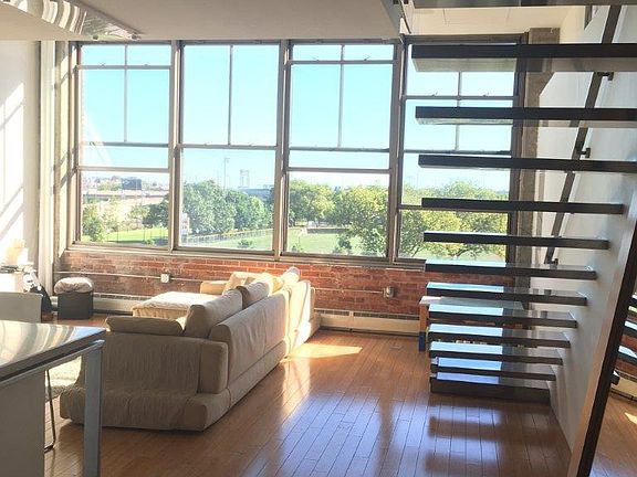 Modern Contemporary Loft. 1,200 sqft. Original living space of 828 sqft + a loft area of 372 sqft with high ceilings in both levels. Excellent open floor plan with two spaces to be use as 2 bedrooms or Bedroom + den/home office. Stylish floating stairs. Modern kitchen with lots of cabinets and oversize stainless Island is open to the living area offering lots of natural light and great park views. Two full bathrooms & a large walking closet. Bamboo floors throughout. Central-air. Washer and dryer in unit. 1 Parking spot. Building offers beautiful common areas, function room, roof deck w/stunning views of the city, 2 elevators, steps to the Blue Line, minutes to Downtown & easy access to the Ted Williams Tunnel and Sumner Tunnel. Surrounded by lots of green spaces with beautiful parks, bike path to Constitution beach and East Boston waterfront, fabulous restaurants, YMCA