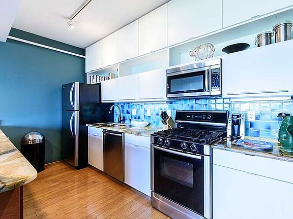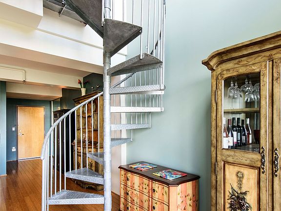 If you think you have seen everything that there is to see at Porter 156, think again! This loft is different - an exceptional and unique offering as the owner has taken a raw space and created a practical, spacious and breathtaking 2-level home that can accommodate both private & flexible sleeping areas with 2 full baths all with such style and class. The renovation were done with the finest quality materials and craftsmanship and no detail was spared! The kitchen was expanded with double height Kohler cabinetry, stainless appliances, granite island creating a dazzling open style contemporary kitchen. Enjoy the wonderful expansive park views from the 22 foot floor to ceiling windows with incredible natural light all day and the most dazzling sunrise and sunset. There is in unit laundry, central air and an amazing private deck that is a wonderful extension of your living space. With 2 garage parking spots & a meticulously maintained building, it is really hard to beat this rare find!