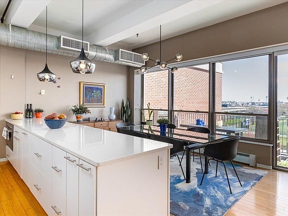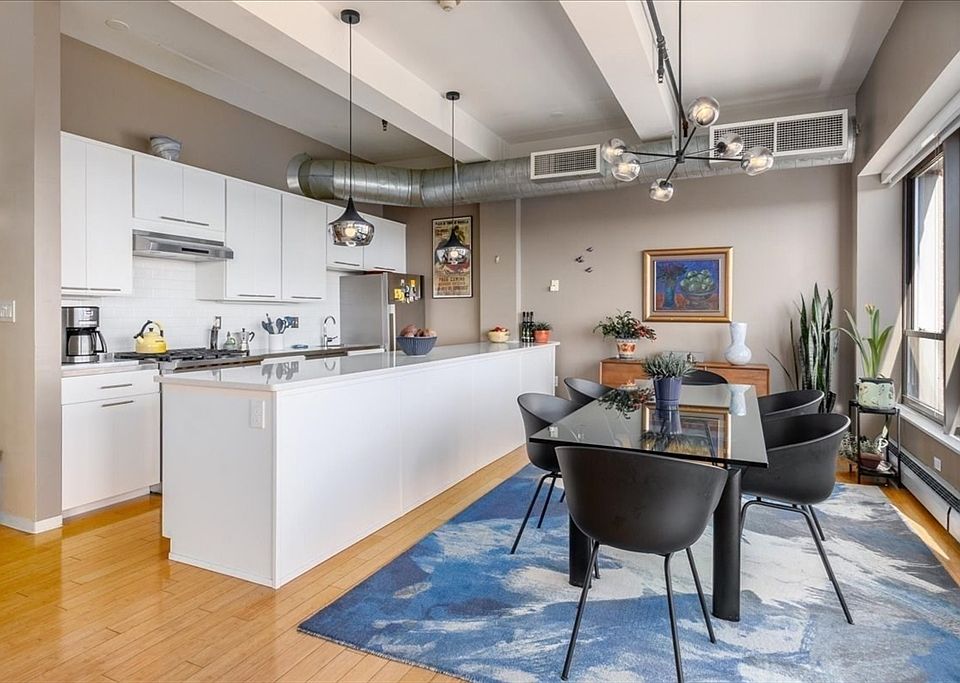 One of only two layouts like this in the entire building, this is a rare & tremendous opportunity to own a spectacular, generously sized home w/2 full baths, open floor plan, lovely skylight on the penthouse level of this exquisite and desirable loft building in exciting Jeffries Point! Wall to wall & floor to ceiling windows offer tremendous light and dazzling park views. Just as extraordinary is the enormous private deck spanning the entire length of the unit providing a private, serene and delightful outdoor space perfect for relaxing & entertaining. With bamboo floors, a brand new kitchen, high ceilings & clean contemporary lines, this is a must see loft that you will love. Of course all of the conveniences of in-unit laundry, central air, 2 car garage parking & additional storage provide the best amenities. The building is well managed and pristine throughout featuring on-site management, stunning roof deck & roof top room. Premiere location steps to T, shops, Waterfront and more!