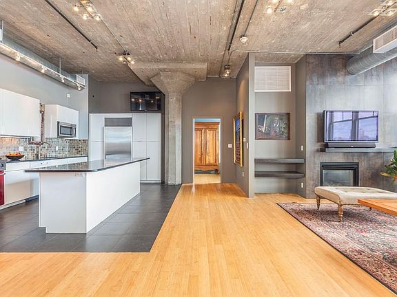 Rare East Boston loft with skyline views that you can only dream of! A bright and dramatic space with more than 2000 SF, this 3 bed/ 2 bath home combines industrial character with thoughtful updates throughout. Enjoy unmatched space for living, dining and entertaining where a wall of windows allows unobstructed views of Boston. Kitchen features Sub Zero/Viking appliances, granite counters, gas cooking, ample storage and center island. The master suite presents more city views, a king-sized bedroom, custom closets and renovated master bath. Two additional full-sized bedrooms with closets. Highlights include a full separate dining room, gas fireplace, central AC, in-unit laundry, high ceilings, bamboo floors, roof rights, additional storage and garage parking for 4 cars. Prof managed building has on-site staff, common roof deck and community room. The neighborhood enjoys Boston Harbor access, great parks, new restaurants and only moments to the T, Seaport, Downtown and major highways.