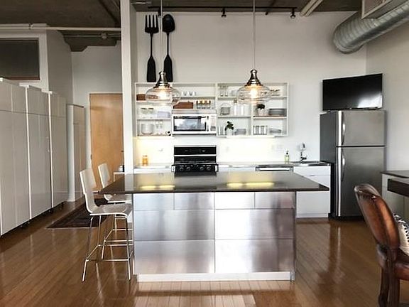 Spectacular Penthouse Unit at 156 Porter, with Garage Parking! Impressive 14 ft ceilings, with bank of enormous windows overlooking the entire Boston skyline. Concrete posts against honey grained bamboo flooring creates the ultimate industrial chic ambiance. True loft, with flexible and open concept layout. In-unit laundry, central A/C garage parking, in a luxury elevator building with shared common roof deck offering 360 Degree views. Located less than .25 mile from T station, on the Green way,and minutes to all of East Boston hip and vibrant Maverick Square, Central Square and Day Square.