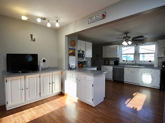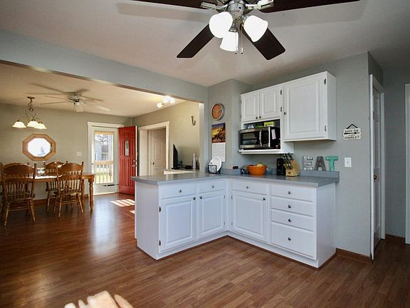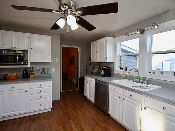 This lovely 3 bedroom, 1 bath home has all the charm of small town life with easy access to larger metros. Sitting on just over a 1/2 acre of land with an over sized, heated 2+ car garage you will have plenty of space to play. You will be welcomed to the home by the large, updated open concept kitchen and dining room. There is plenty of cabinet and countertop space to satisfy all of your kitchen storage needs. The living room has a great layout perfect for entertaining. With a main floor primary bedroom, full bath, laundry, 3rd bedroom/office and a three season porch, single level living an easy possibility. Enjoy the country lifestyle!
