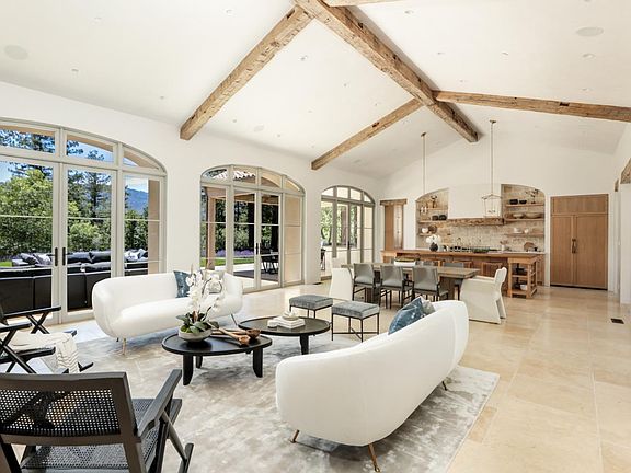 Tasteful, extremely high-end new construction, completed in 2019. A stunning example of a Modern Provincial French Farmhouse located in a sought-after Central Woodside location, blocks to town. Stunning western hill views maximized throughout. Approximately 5,462 square feet of living space on an approximately one-acre lot. 6 bedrooms + office + gym/yoga studio. 4.5 bathrooms. Incredible chefs kitchen opens into great room with beautifully vaulted ceiling with rustic beams salvaged from a barn in Colorado. Separate spacious family room. Top floor office with cathedral ceilings, French doors onto private rooftop veranda with incredible views. Spacious primary suite including walk-in closet and outdoor shower. Old world materials - stone, wood, plaster - with modern lines and walls of glass to maximize light. Detached 2-car garage. Sought after Woodside Elementary.