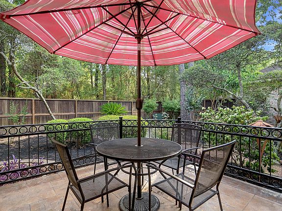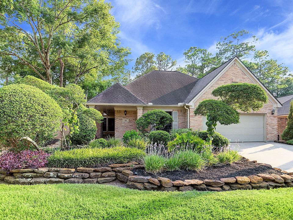 Situated in desirable Copperknoll, this beautiful, light and bright one-story with a gated courtyard features a superb, open floor plan with high ceilings, hardwood and travertine floors, plantation shutters and crown molding throughout. Offering a gas-log fireplace and expansive windows, the lovely family room flows seamlessly to an island kitchen with granite counters, abundant cabinetry and cozy breakfast room. The handsome, executive study with built-in's & glass French doors provide an ideal work-from-home space. Oversized owners' retreat includes a luxurious bath with dual sinks, make-up vanity, soaking tub & separate shower. A tranquil backyard with lush landscaping, covered patio with ceiling fans & pergola is great for relaxing & entertaining. Upscale shopping/dining, parks, country club, golf course, hospitals & entertainment venues are minutes away. WHOLE-HOUSE GENERATOR, LOW TAX RATE, SUPERB NEIGHBORHOOD, EXEMPLARY WOODLANDS SCHOOLS are few extras with well-maintained home!