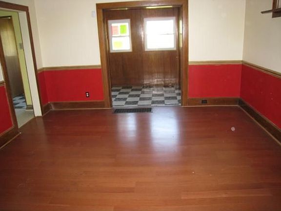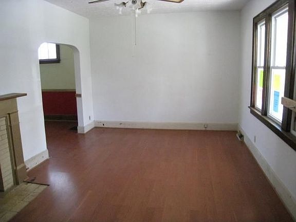 This home has 3 bedrooms plus the option to set it up with a possible fourth bedroom off the master. There is a full bath up and a half bath on first floor. When your entry off the huge front porch into a large living room with ornamental fireplace and parquet wood floors, then into a huge dining or family room that opens to the back room and the kitchen. The kitchen has ample cabinet space and a new floor with the doorway to the full basement which has a washer/ dryer hookup, forced air furnace and central air conditioning. The entire house has a fresh coat of paint. Outside has a 6 ft, fenced in back yard with a 1 1/2 car garage. Also ask how to do a free on line app at my web site allcreditconsidered.net Tenant is responsible for all utilities and yard maintenance