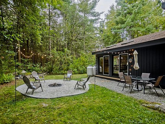 Welcome to this beautiful Contemporary Ranch w/ 3 beds & 2 full, updated baths located on a double lot of .91 acres total, in a private lake community of Wildwood. This charming village of Tolland boasts natural beauty & the timeless appeal of classic New England. Enjoy the view of perennial woodland gardens from your enclosed, 3-season porch. The living room has cathedral ceilings, a tile electric fireplace, updated lifeproof vinyl floors & a dining area, w/ 2 french doors leading to the backyard w/ a patio & in-ground fire pit. The kitchen has updated lifeproof vinyl floors & recessed lighting. The large, primary bedroom has cathedral ceilings, a loft w/ access to the attic, & a full bath. Both baths have lifeproof vinyl tile floors. The other 2 bedrooms have wall-to-wall carpet & double closets. Close to 5 private beaches on 2 spring fed ponds & to Berkshires’ fine dining & world class performing arts venues-Tanglewood, Barrington Stage & Jacob's Pillow.