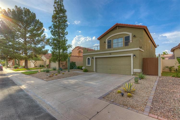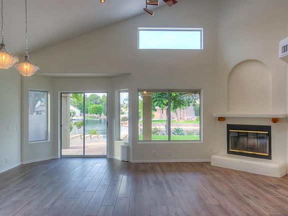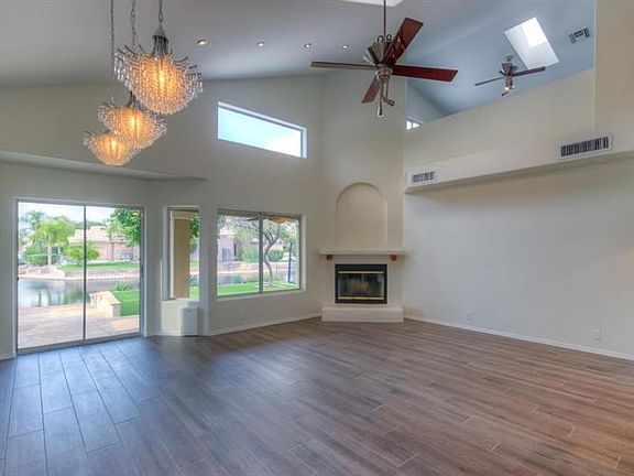 Beautiful lakefront property for sale in sunny Chandler AZ. Fantastic curb appeal with low maintenance desert landscaping and courtyard entryway. Unbelievable entryway with towering vaulted ceilings, tons of windows, and amazing views of the lake! Recently updated kitchen with ss appliances, quartz counters and refinished white cabinets. 1st floor master has spacious bathroom and closet, and sliding patio door with private entrance. Upstairs you'll find 2 HUGE bedrooms and loft with balcony and more views! Tropical like backyard w towering grapefruit tree, roses, birds of paradise, artificial turf, in-ground tramp, boat dock, and full length covered patio. 2.5 car garage! brand new upgraded flooring through out! Unbeatable chandler location! 2 much 2 list.. must see!!