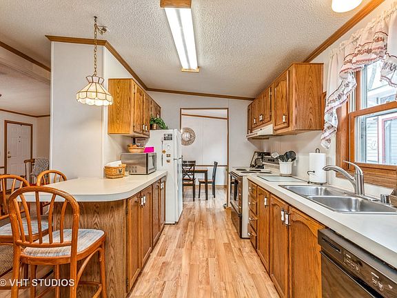 Wonderful and desirable 55+ community in Indian Trails. Spacious 1456 sq ft home with 3 bedrooms, walk in closets, 2 full bathrooms. Master bathroom has garden tub, double vanity and shower. Kitchen area has breakfast bar, a wall of cabinetry with desk and buffet. Great corner lot with gazebo on deck. 2 car heated garage with workshop. Newer furnace and hot water heater in 2021. All appliances are included. Lot rent includes water/sewer, trash, cable. Prospective residents must be approved by management and pass a background check.