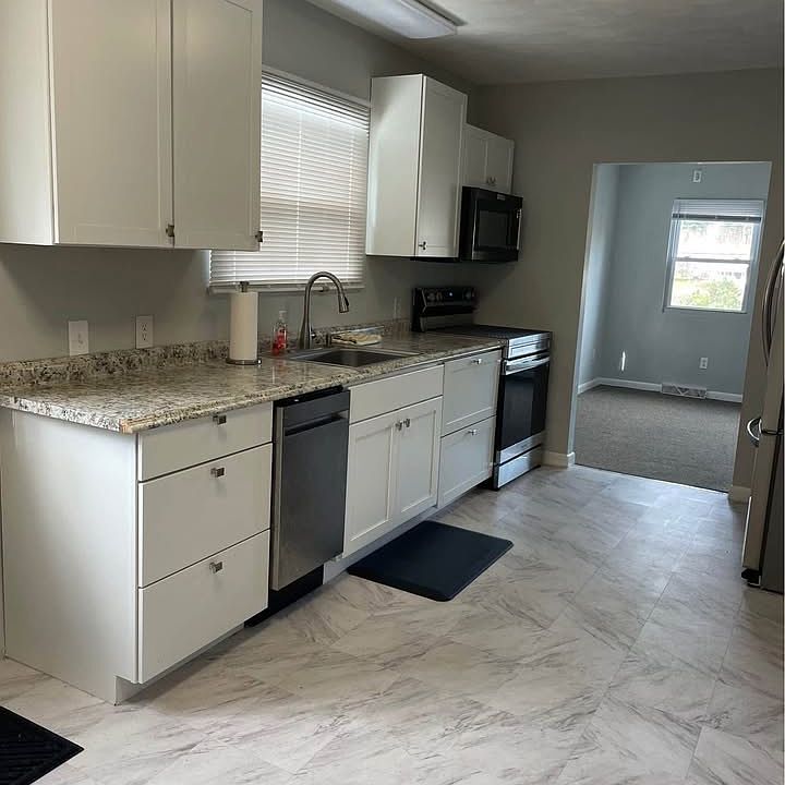 Will post more pictures ASAP. 3 Bed / 1 bath single family home, newly renovated ~1,100 sq ft with new kitchen cabinets and appliances, paint, flooring and carpets, available immediately. Located on Shore Drive in Salem NH across the street from Arlington Pond. Tenant must pay utilities, credit check and no pets. No beach access but you can join the pond association for beach access just down the road. Please note that when responding to this add I will provide you with a phone number to call or text - I am posting this home for a family member. Serious inquiries only