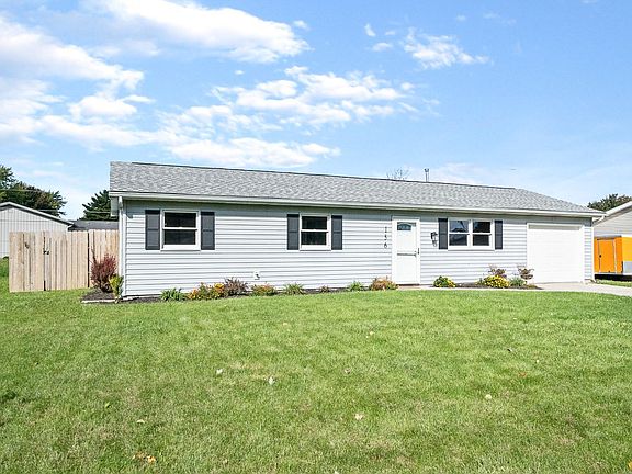 Updated, cozy & absolutely pristine ranch on a slab! Located on a quiet street in Churubusco, this home is completely move-in ready. Well maintained 1/4 acre lot with select landscaping elements add charm to light blue/grey siding, dark shutters & newer roof. Inside is fresh & modern w/ on-trend light grey walls, white trim accents & dark wood flooring. Living area gets plenty of afternoon light making the space cheery & welcoming. Updated kitchen features newer stainless appliances, white cabinets w/ & silver hardware and an eat in dining area as well. Bedrooms feature newer carpet & master bedroom has 2 closets. Bathroom looks chic w/ updated tiled tub/shower & updated white vanity w/ framed mirror. Every window includes a view of green, but the large backyard w/ privacy fence is truly your own oasis. Relax on the patio edged w/ flowers, or enjoy marshmallows around the fire pit. Other recent updates include Spanish laced ceilings, doors, trim, & garage door opener. Conveniently close to downtown, local schools, parks, shopping & food.