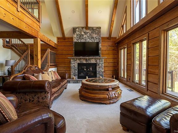 This custom 3 bedroom, 2 bath log home sits on 19 acres overlooking the beautiful Weiden Lake. Soaring ceilings, gorgeous stone fireplace and open floor plan are the perfect setup for you and your guests whether lived in year round or used for your weekend getaway. This home features natural light, beautiful hand-crafted wood and a large porch, perfect for entertaining. Enjoy fishing and kayaking on the lake or roast marshmallows on the fire pit. Listen to the the tranquil sound of water flow down the stream that borders the property. Just 90 miles from the GW Bridge and minutes from the Town of Narrowsburg. Go rafting on the Delaware River or skiing at Big Bear Mountain Resort. Great local shopping and the best restaurants in the area. Air Bnb is not allowed.