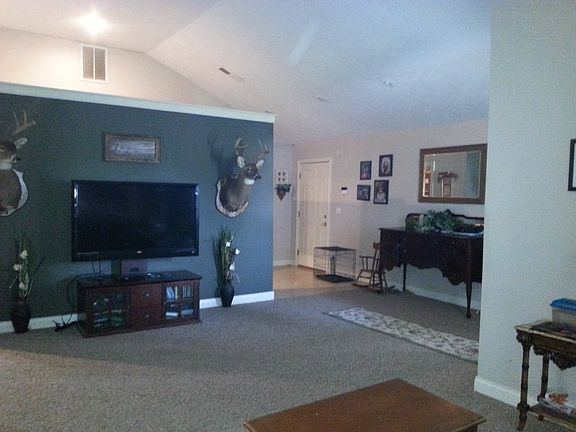quite peaceful living.Home has Attached garage and detached garage with electric. Also outbuilding with kennel. About 3 acres wooded around 2acres cleared. Vaulted ceiling in living room. New carpet . Paint . Beautiful country views. Master bed has tray ceilings, walkin closet and private bathroom with jacuzzi bath. There is a small pond in the woods . Deer and turkey also been seen a lot on the property