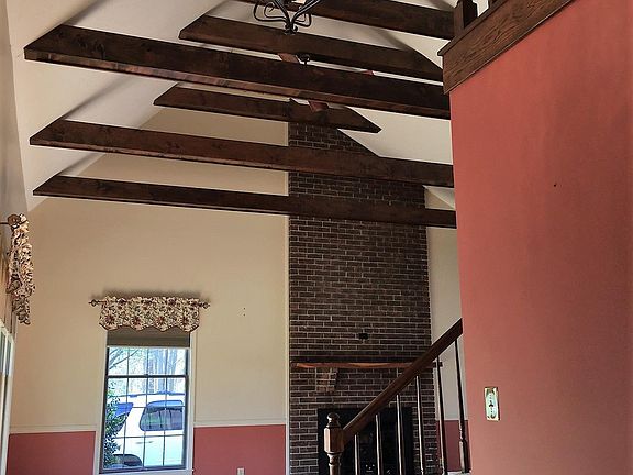 Open beamed two story ceiling and beautiful wood flooring welcomes you as soon as you walk through the front door of this custom home. Add a lovely brick fireplace and the room becomes the respite you've been looking for. It only gets better in the kitchen that opens to a screened porch overlooking a private patio with built-in grill and lush backyard. The main level boasts a large master suite plus another bedroom, a guest bathroom and a separate laundry room. Upstairs the space continues in two more guest bedrooms and the third bathroom. Outside the detached garage is only a few steps from the house and easy access comes from the concrete drive. This garage is oversized and has a surprise open-air addition for easy access for your yard equipment. This garage can handle two cars or a car and a boat. You decide. This opportunity is only a few minutes from Jamestown Resort & Marina. Community has other custom homes and a walkway to access the government land to the lake.