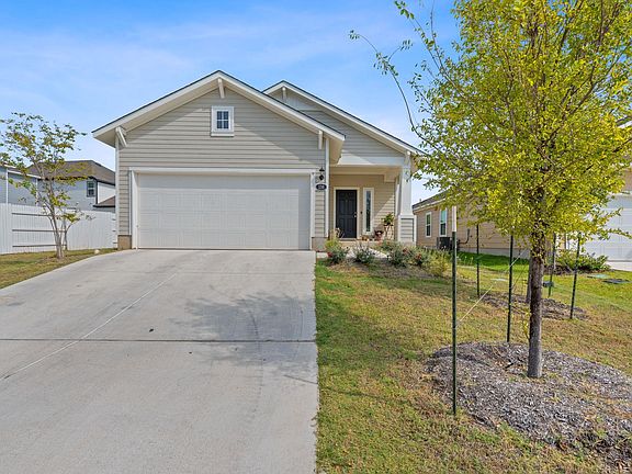 This beautiful home offers modern living with an open-concept floor plan, filled with natural light. The spacious kitchen features granite countertops, stainless steel appliances, and a center island with seating perfect for cooking and entertaining. The living and dining areas flow seamlessly, creating a warm and inviting space for family and friends. Retreat to the primary suite with its large walk-in closet and private bath featuring dual vanities and a walk-in shower. Additional bedrooms are generously sized, making this home ideal for families or guests. A dedicated laundry room adds convenience, while the fenced backyard with a covered patio provides the perfect setting for relaxing or hosting gatherings. Located in a friendly neighborhood just minutes from Elgin schools, shops, and a short commute to Austin, this home offers both comfort and convenience. Don’t miss the chance to make it yours!