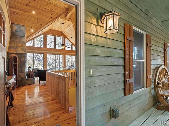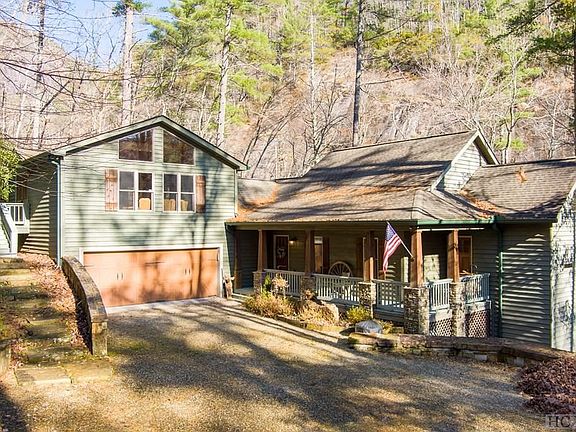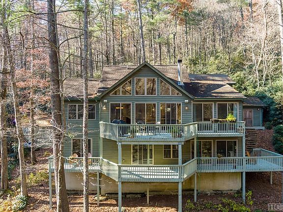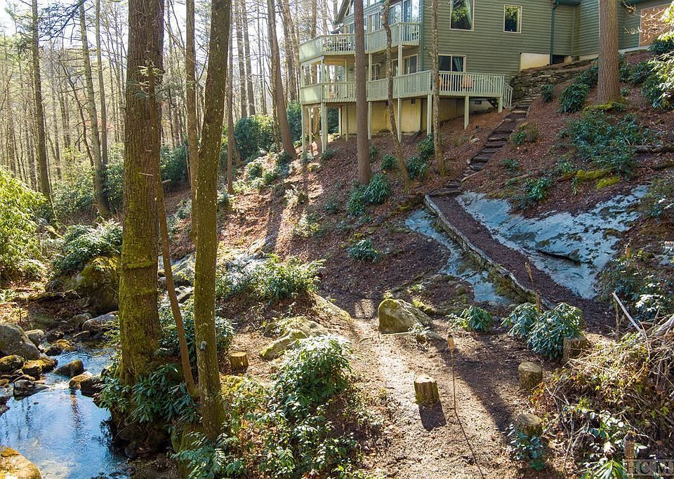 Lovingly named Beyond Heaven, this home is perfect for anyone who wants the experience of being surrounded by nature and the opportunity to have your very own rock face and flowing creek as the backdrop of your mountain getaway. This home has a light and bright feel thanks to the large amount of windows found throughout that allow you to take in the lush surroundings. On the main level, you'll find an open floor plan in the living area that flows into the kitchen then around to a large laundry room and powder room. The owner's suite is also on the main level and features a generously sized walk-in closet and private bathroom. The lower level is host to a second living area and two en suite guest bedrooms. All bedrooms and living areas include sliding doors to an open deck with stairs to the yard and creek off of the lower deck. A bonus room is located above the two car garage and workshop and is currently being used as a rec room with a small mountain view from two of the upper windows. Outside, there's a manicured path to the creek and two small pools in the creek, one behind the house and the other upstream where you'll need to hike or clear a path. Also included, is a community area with a pavilion, garden space and access to two small lakes including Holly Berry Lake where you can canoe and take in phenomenal views of Whiteside Mountain. Whether snuggling up by the fire, enjoying time on the deck listening to the sounds of the creek below or hanging by the lake in the warmer months, this home is made for making wonderful memories for years to come.
