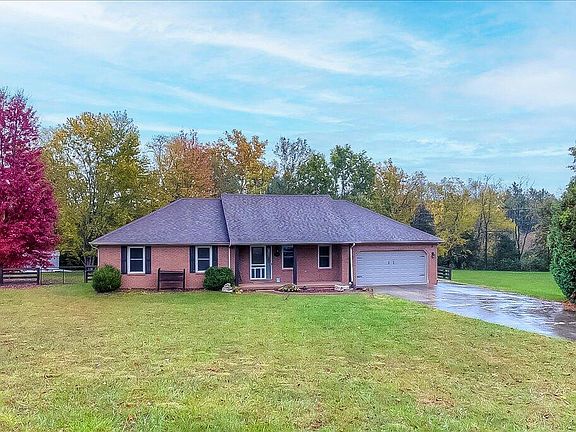 CHARMING ALL-BRICK RANCH ON 1 ACRE! Lovely all-brick ranch home situated on a beautiful 1-acre lot just minutes from I-75. This charming home features gorgeous hardwood floors, vaulted ceilings, and a spacious laundry room with extra storage. The functional kitchen offers plenty of counter space and cabinets, making meal prep and storage a breeze. Enjoy the peace of mind and savings of a modern tankless hot water heater! The 3 bedrooms provide comfortable living, including a light-filled room currently staged as an ideal work-from-home sanctuary. Enjoy the inviting covered front porch, fenced backyard, and two convenient storage buildings—perfect for hobbies, tools, or outdoor equipment. Schedule your showing today to experience this fantastic property!