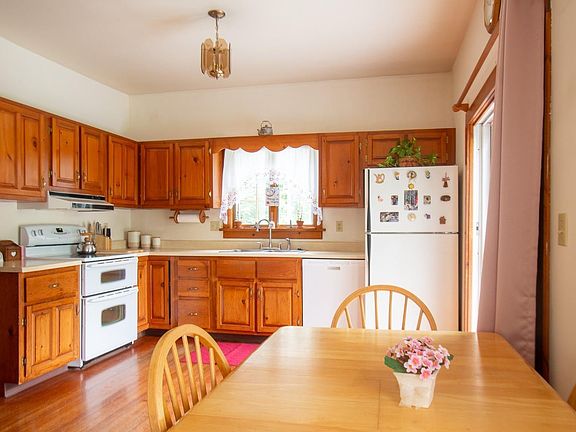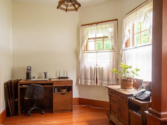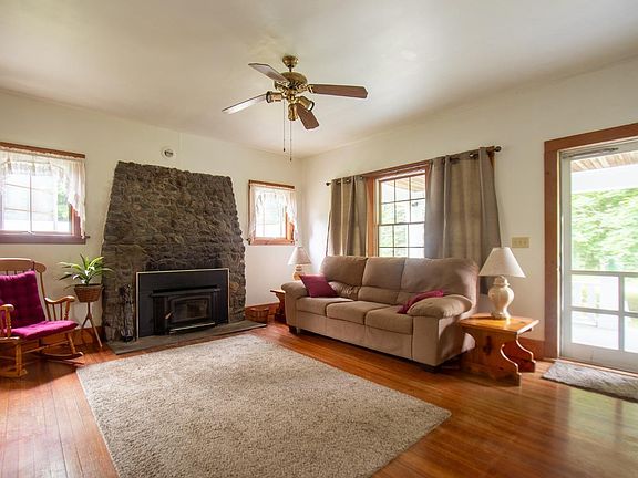 Aladdin homes Pomona. Shaded by the picturesque maple planted when the house was built this 1900s gem located on a rural byway for a location as quiet as can be. Greeted by the extra deep rocking porch. Enter into the living room with a local fieldstone fireplace and wood floors. Bright office and laundry on first floor. Wonderful working kitchen with many windows and doors to bring the light in. Eating area leading to another side porch. Dining room or den downstairs. Three bedrooms upstairs. Primary with cathedral ceilings. Fruit trees and blueberry bushes. Back deck overlooking the expansive lawn and wonderful gardens and flowering trees. Two car garage with workshop. Barn for animals, hobbies, studio or storage. 3.5 acres all usable on a road surrounded by large landowners. Queechy Lake rights. Swim, canoe or kayak to cool off. A rare find on a back road close to all amenities. Truly a charmer.