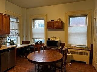 This lovely historic brownstone features 4 fireplaces, 10 ft ceilings, hardwood floors, magnificent woodwork detail, updated bathrooms, tons of storage and a rebuilt covered front porch to watch the Oval activities. There is a one car detached garage owned by the HOA with exclusive use by the owner of 156 U.S. Oval. Enjoy recreation at your doorstep with the Oval park, playground, lakeside bike path and the YMCA gym.
