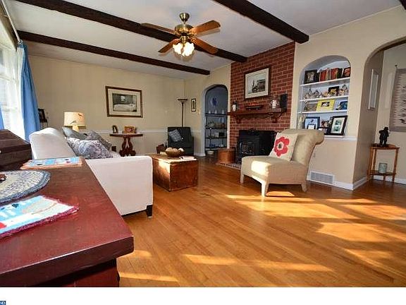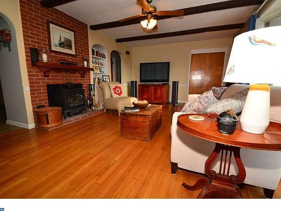 Welcome home! Perfectly maintained, and perfectly situated on a corner lot, this home is looking for a new owner. The backyard is large, fenced, flat, accented by a small frog pond, or fish if your desire, all to be enjoyed from the covered back brick patio. One car garage, with a long driveway for extra parking adds to the exterior benefits. The front yard continues to a spacious side yard, for extra outdoor space, and includes a second small fish/frog pond, all graced with large trees, and landscaping. Step inside to discover a brick fireplace with a coal/wood stove insert, and hardwood flooring in the living room, trimmed with open beams, ceiling fan, and a bay window. There is a guest closet for convenience, and built-in bookcase to display your treasures. Meals can be prepared in a Richmaid kitchen; electric range/oven, dishwasher, refrigerator, vinyl floor, and tile backsplash. The laundry is located next to the kitchen, offering additional storage and a laundry tub. Your happy place will be the sunroom, spacious enough to provide a seating/entertaining area and dining. Year-round comfort from the ceiling fans, skylight and electric baseboard heating (in the sun room only). Hardwood flooring continues into the bedrooms, both feature large closets, and ceiling fans. Cermaic tile hall bath serves both bedrooms; shower/tub combination, vanity, linen closet. Full basement provides storage space, plus 2 rooms; family room (possible 3rd bedroom), and office space. Newer tilt in insulated windows with screens, new dimensional shingles 2014, rubber roof on sun room, pull down stairs for attic storage (floored with lighting), oil hot air heat, central air, water softener, sump pump with battery back up, newer gutters, shed. Single floor living at it's best if desired! Square footage is estimated and includes sun room. 11/21/16