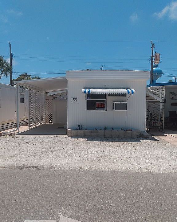 Venice Municipal Mobile Home Park is also a part of the former Venice Army Air Base. It was developed around 1949, with 186 lots. The facility is located less than a mile from the beaches on the Gulf of Mexico. This home is a 1 bedroom 1 bathroom with a carport and two sheds: one rubbermaid with electric and place for washer and dryer(used as a workshop) and one attached for storage. Beautifully updated with new interior paint, kitchen cabinets, curtains, rugs, tv, sink and double bed. Flooring is newer and the home comes turnkey! 432 sq ft is awaiting your arrival (just bring your clothes) and start living the dream. Ac is a window unit and cools the place well! A nice walk in jacuzzi bath tub, holds 85 gallon of water. Low lot rent of $350/month includes trash and lawn. Pet friendly with restrictions. Revenues from the lot rents go to the Airport Enterprise Fund to serve to provide funding for the operation and maintenance the Venice Municipal Airport. Must be approved from community before closing.The mobile home park has a recreation hall, a laundromat with an outdoor drying area and shuffleboard courts. Walk to the Chuck Reuter Stadium, bring the grand kids, there's a playground and lots of entertainment, also close to the hospital and beaches. All listing information is deemed reliable but not guaranteed and should be independently verified through personal inspection by appropriate professionals. Integrity Mobile Home Sales cannot guarantee or warrant the accuracy of this information, measurements or condition of any property. Measurements are approximate. Lot rent is subject to change.