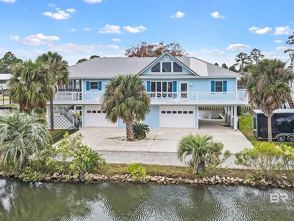 Live at the Beach without the constant turn over of weekly guests. This area is a rental restricted area, designed for full time residents. "Blue Bayou," is an exquisitely remodeled 3-bedroom, 2.5-bathroom home nestled on W 5th Ave in the heart of Gulf Shores. This waterfront paradise has been transformed to offer a blend of modern luxury and serene beachside living. As you step inside, you are greeted by an open and airy floor plan that frames breathtaking water views from every corner. The large, sunlit windows not only infuse the space with natural light but also provide glimpses of the Gulf of Mexico, setting the stage for unparalleled sunrises and sunsets. The heart of this home is the custom kitchen, boasting top-of-the-line appliances and sleek quartz countertops, handmade tile backsplash making this space ideal for both culinary adventures or intimate gatherings. The living area, with its elegant design and comfortable ambiance, is perfect for entertaining or relaxing. Each of the three bedrooms is a private retreat, offering tranquil views and an ambiance that promises restful nights. The bathrooms, including a luxurious master en suite, are outfitted with contemporary fixtures and finishes, adding a touch of sophistication. Step outside to your personal oasis where the beauty of Gulf Shores unfolds before you. The outdoor spaces are tailored for enjoying the stunning waterfront vistas, whether it's a morning coffee watching the sunrise or an evening cocktail as the sun dips below the horizon. Freshly Painted dock. This home has it’s very own concrete boat ramp and once your are finished boating, simply pull forward and store your boat in the covered carport—this is in addition to the deep and oversized two car garage. Located in a sought-after neighborhood, "Blue Bayou" combines the tranquility of waterfront living with the convenience of being just minutes away from the best beaches, dining, and entertainment that Gulf Shores has to offer. Buyer to verify