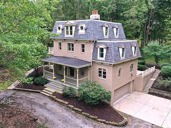 RARE Custom-Built Second Empire Victorian home in a wooded enclave perched high atop a hill in Middlesex Township, Mars Schools. Set on nearly five wooded, private acres with woods to roam, take the switchback driveway uphill until the amazing property emerges out of the treetops at the crest. Solid and stoic, this first-time-offered, mansion-like home is full of custom details, warmth and charm. Three levels of space and light, the home boasts five bedrooms & 4 1/2 baths. Hardwood floors grace the main level with bright living, dining, kitchen & family rooms, giving access to patios, mud/dog room with fenced area, cozy FR fireplace, & unique open stair to 2nd & 3rd floors. Radiant heat! Five bedrooms grace the upper levels & include a master with huge fireplace & private Juliette balcony, large laundry (laundry chute), and loft/study on the 3rd floor flanking 2 more beds, loft & full bath. Basement with finished area (another bed or office), full bath, oversized grg & safe room. WOW!
