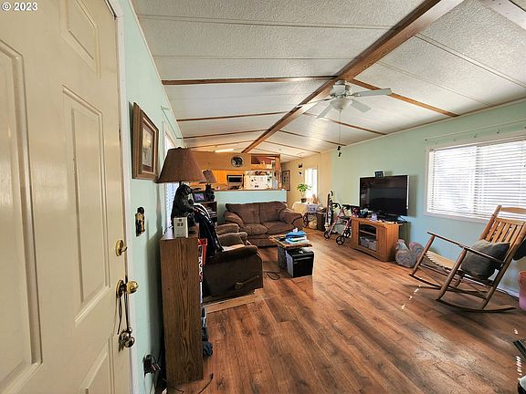 Cute 3 bedroom, 1 bath manufactured home on fenced, corner lot in Union, Oregon! Enjoy the large back yard with fruit trees and room to play or garden. Covered front porch and back deck. Plenty of storage in the single garage and separate storage shed. Inside the open flow allows for ease of living with a wood stove and forced air heat.