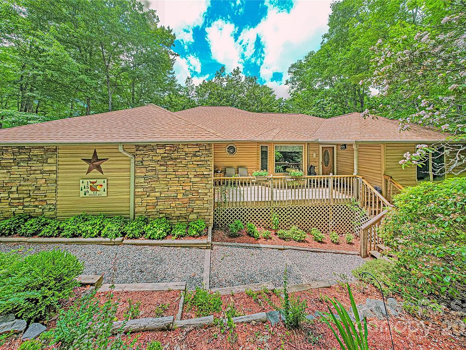 Tucked in a private wooded setting on beautiful Lake Atagahi in Connestee Falls, this 3/3 home is situated on 1.12 acres ( combined 3 parcels) and sits adjacent to Connestee Falls HOA walking trail. With views overlooking the lake, main level living and a lower level that includes a workshop, an exercise room, and a bar area, this home offers a comfortable lifestyle in a gorgeous setting. Neighborhood amenities include trail systems, club house, golf, tennis, pickleball, fitness center, swimming pool, dog park, restaurant and more. This home is a must see.