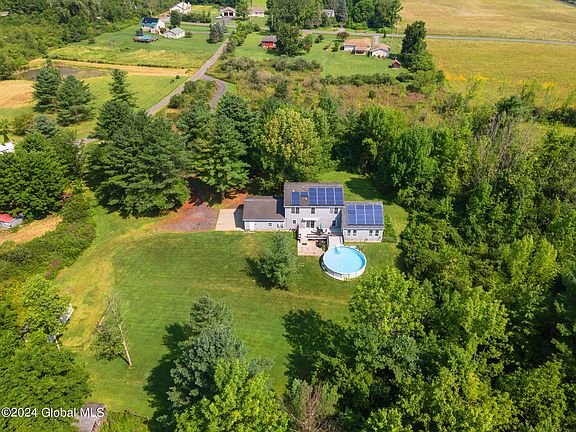 Welcome to your dream home! This beautiful colonial-style residence combines classic charm w/modern amenities on a sprawling 4.6-acre lot. Nestled on a private driveway off the road, this property offers tranquility & seclusion while still being conveniently close to local amenities. This inviting home features 4 BRs & 2 BAs. Equipped w/solar panels, this home is designed to be energy-efficient. You can also stay warm & cozy year-round with 2 additional pellet stoves. Stepping outside is your private outdoor paradise, featuring a spacious patio, a lovely deck, & a refreshing pool. There property also includes an attached 2-car garage which ensures convenience & additional storage space. Don't miss the opportunity to envision your new lifestyle in this charming colonial retreat!