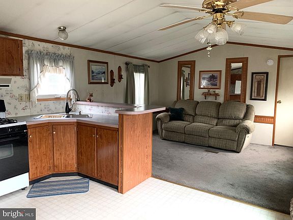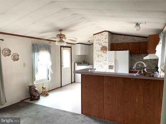 55+ Community only Walking through the doorway fo this home you will notice the open floor plan that awaits you with a wonderful kitchen with corner sink, plentiful cabinetry and a breakfast bar that allows you to entertain guests while cooking. The living room of this home is an open floor plan to the kitchen and offers a cozy area to relax. Two good sized bedrooms, a full bathroom and laundry area round out this adorable home. .This home has been very well maintained with all the major systems in good working condition. The home is impeccable and just needs fresh paint and a new owner to enjoy the charm. Property being sold as is where is but in fantastic condition.
