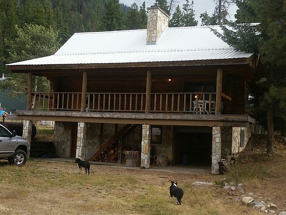 Log Cabin in the village of Yellow Pine, ID. Three levels- Main, Loft & Basement. Two bedrooms plus loft, basement with laundry room and 1 car garage. Large stone fireplace, oil furnace, septic and community water. Short walking distance to town. Sits on 1.65 acres with fenced pasture & year round live water creek. Has metal roof, fire pit and 2 large storage buildings. Includes most furnishings and appliances.
