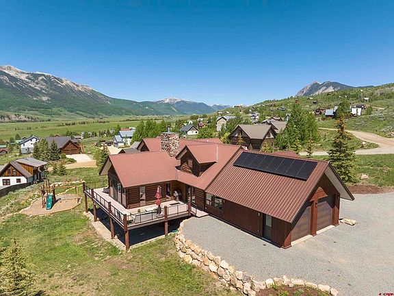 Don’t miss your chance to own this exquisite mountain home—one of the best values in the upper valley! Set back on a quiet street and perched on one of the premier lots in CB South, this thoughtfully updated home is perfectly positioned for entertaining friends and family while offering incredible flexibility for full-time living, vacationing, or investment. With unobstructed, forever views and spacious living inside and out, the home can live large as a 5-bed, 5-bath single-family retreat or be configured as a duplex to maximize your investment potential. Step through the covered flagstone entryway into a grand foyer that immediately sets the tone with its warm, rustic-luxury aesthetic. The updated chef’s kitchen features a 36” professional range, oversized island, and elegant quartzite countertops. From there, the open floor plan flows into a majestic living area with vaulted ceilings, expanded 8’ windows, and sliding glass doors designed to frame the stunning mountain views and flood the space with natural light. Outside, a wraparound deck invites you to soak in panoramic vistas stretching from Paradise Divide to Round Mountain. The main-level primary suite offers a private retreat with a tastefully updated bath and spacious walk-in closet. Upstairs, you’ll find two oversized bedrooms—each with en-suite baths—plus a versatile loft area perfect for an office, reading nook, or play space. Downstairs, a bright, fully finished walk-out basement opens the door to flexibility. Integrate the space seamlessly into the home or “lock it off” to create a 1,300 sq. ft. caretaker unit featuring 2 bedrooms, 1 bath, an office, its own kitchen, living room, laundry, parking, and private entrance. An oversized heated garage completes the home, offering 9.5’ doors, a custom workbench, convenient mudroom, and a huge bonus room above—accessible both from the garage and via a hidden bookshelf door in the upstairs bedroom. Designed for comfort and efficiency, the home includes in-floor radiant heat, a new high-efficiency boiler, solar panels that offset electric costs, and pre-wiring for an EV charger, hot tub, and solar array expansion. The south-facing orientation maximizes winter solar gain while keeping the home naturally cool in summer. With nearly an acre of land, extensive upgrades, and modern amenities throughout, this home delivers all the luxury and versatility you want—at less than half the cost of a new build. This is your opportunity to make the move and create cherished moments with family and friends in a home designed for generations to enjoy.
