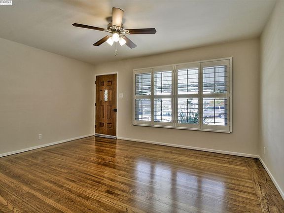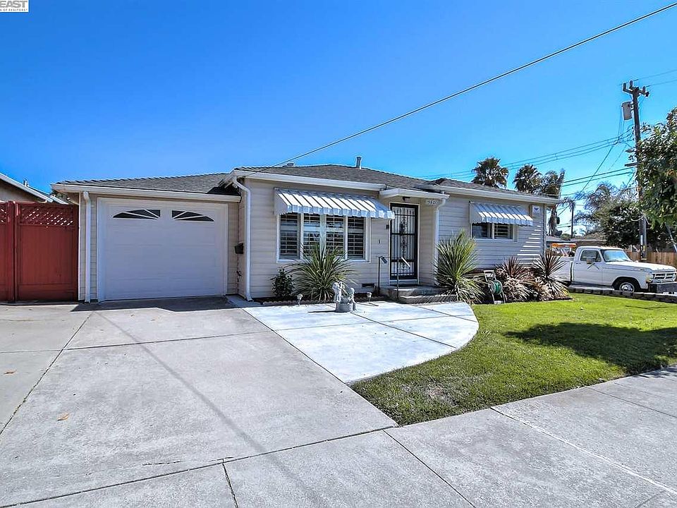 Charming home with gorgeous interior features. Recently remodeled kitchen with granite countertops and newer appliances. Newly refinished hardwood floors in living room and hallway, dual pane windows, plantation shutters, fresh interior paint, new carpet in bedrooms, updated bathroom, new ceiling fans, and a newer roof. Attached 1 car garage, washer and dryer included. Backyard covered patio is perfect for backyard BBQs and entertaining, storage shed and potential side yard access. Centrally located, close to shopping, easy access to 580 & 880 freeways, public transportation, BART and all Bay Area job centers.