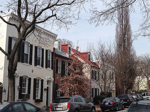 Enjoy living in vibrant Georgetown with shops and restaurants just steps away. The main level is wonderfully light filled and features soaring 10-foot ceilings. The living area includes a wood burning fireplace and opens into a private flagstone patio with lush plantings. The open dining and living area make an excellent layout for entertaining. The galley kitchen includes plantation shutters, quartz counter tops, stainless steel appliances and a large pantry. For added convenience, the kitchen also includes front loading washer and dryer. The upper level features a library with floor-to-ceiling book shelves. This large space is ideal for a home office or den. The two bedrooms are spacious and filled with natural light. Each bedroom includes a large closet, ceiling fan, wooden blinds and extra storage. The upper level bathroom includes a dual flush toilet, skylight and pedestal sink. Ideally located in Georgetown's West End Village, the house is steps from Volta Park with a playground, pool and tennis courts. Close by is a direct bus line to the Work Bank, IMF, the White House and Downtown DC. Comcast service is installed. Short term rentals are welcome.