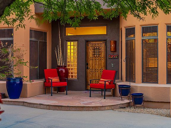 Stunning Santa Fe home in the resort like community of Pueblo Casandra. Beautifully situated close to the community pool/spa, feel like your very own! Gorgeous entry way leads you straight into the spacious great room with beautiful gas fireplace with rustic mantel and metal surround. This home features 10 foot ceilings and floor tiles that look like wood throughout. Entertaining is a delight in 2021 remodeled kitchen with quartz countertops, white marble-Herringbone backsplash, blanco large single bowl sink, ample cabinets, and bay window breakfast area. There is a pass thru for the formal dining area. Huge master suite with patio access, large master bathroom and attached walk-in closet. There is a Guest bedroom plus a den/office. Beautiful back patio. Easy care lifestyle! Pueblo Casandra is Wickenburg's unique Santa Fe community with 24 custom and professionally landscaped homes that make up this one of a kind community. Enjoy a stroll down the beautiful desert, landscaped Paseo. The expertly -maintained grounds complete this western portrait.