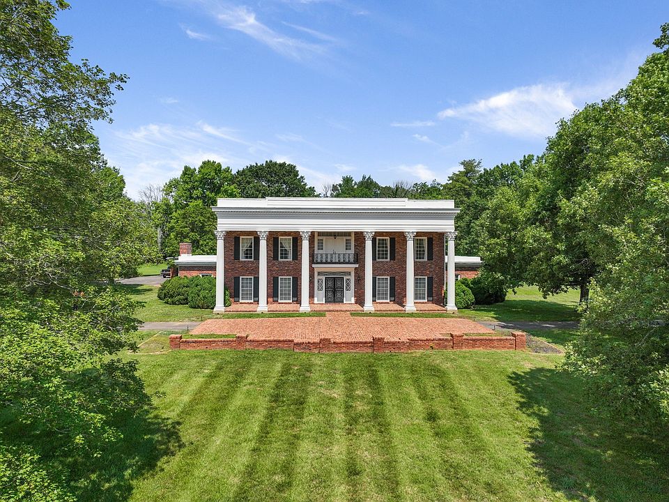 Perched atop picturesque rolling hills, this enchanting estate offers an expansive view of the surrounding landscape. Six stately Corinthian columns create a grand entrance, while a quaint bridge spans a stream winding through the property's verdant acreage. Ten acres of wooded land provide a haven for wildlife enthusiasts on this sprawling 85-acre retreat. Featuring 6 bedrooms and 5.5 baths, including a main-floor primary suite, this residence offers ample space for comfortable living. A home office, refreshing in-ground pool, & a three-car garage complement the spacious back porch, ideal for gatherings. Noteworthy is the historic brick facade, salvaged from a downtown Nashville landmark, lending character to the home. While boasting timeless appeal, this property offers the opportunity for modern updates to suit individual tastes. Welcome to a world of tranquility & potential. Buyer/Buyers agent to verify all pertinent information, including school zones. Agent is related to sellers.