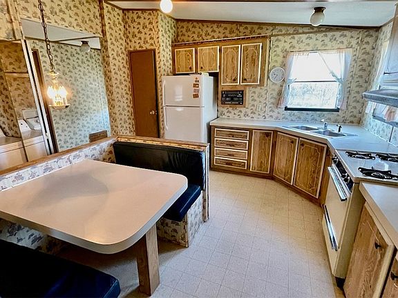 HIGHEST & BEST DUE FRIDAY 5/12/23 AT NOON. For those looking for an affordable home on acreage then consider this 3BR 2Bath 1985 double-wide. Private backyard with a large shed. Home does need updating. Cool looking bench restaurant looking seating in the kitchen. And lots of light streams throughout the home. Also keep your toes toasty warm with the pellet stove built in the fireplace in the large living room.