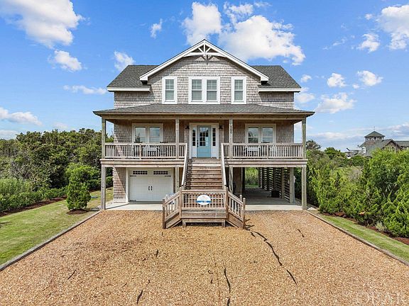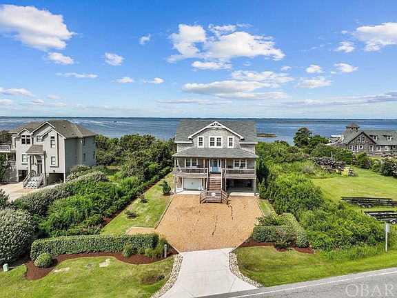 This stunning five-bedroom, four full, and one-half-bathroom waterfront property is a true gem, flawlessly integrating breathtaking sound views and masterful construction to offer the ideal balance of formal and serene seaside living. This beautiful soundfront home in the sought-after town of Duck represents an excellent opportunity to buy an investment property, second home, or primary residence. This luxurious and top-tier property was built in 2019 by renowned Renaissance Construction and has over 2450 square feet of exceptional craftsmanship.  The exterior features a landscaped yard with a walkway to a private dock with bench seating, an enclosed one-car garage, a carport area, and two covered porches, which provide excellent locations for leisure and for taking in the breathtaking views.  A third deck space enables sunning while enjoying the refreshing waterfront breezes.  The interior is similarly impressive. The elevator provides convenient access to each level including the garage.  The well-equipped kitchen easily connects to the inviting living room, producing a warm and friendly environment for informal living and gatherings with plenty of natural lighting. The gas fireplace along with built-in benches in the living area add an extra touch of warmth. A formal dining room with breathtaking views adds a sense of refinement to the kitchen and living space.  The five bedrooms and four full bathrooms that have custom tile and glass showers ensure privacy and comfort for you and your guests.  This savvy arrangement also offers excellent rental potential, making it an appealing financial decision. Other features worth noting are solid panel doors, plantation shutters, auto light closets, a tankless water heater, and plenty of storage, both inside and out. As part of the desirable Sanderling Community, more specifically Station Bay Cove, this property provides convenient access to various amenities and fantastic restaurants.  Experience the conveniences of modern coastal living while indulging in the charm and tranquility that Duck has to offer.  This remarkable waterfront escape embodies elegance, comfort, and the essence of coastal living! Please be sure to check out the virtual tour of this property by copy/paste into your browser: https://my.matterport.com/show/?m=LCMxNL4yatH&mls=1