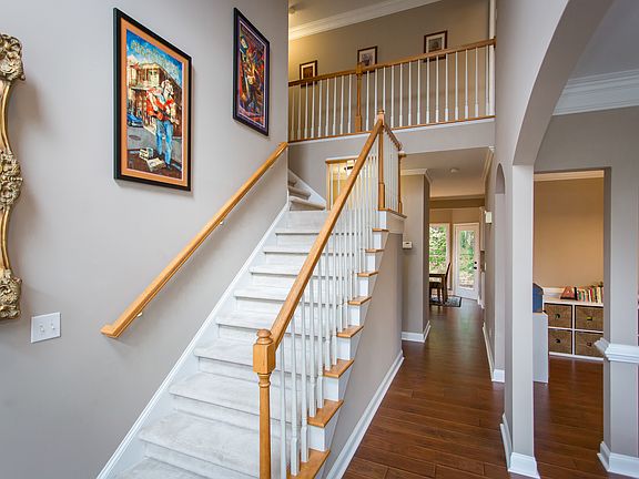 Down a quiet road where small town community values & modern convenience meet, sits this inviting contemporary-style home at the end of a private drive. Lit in a cheery natural light, the home's open layout w/ 9-foot ceilings kicks off its inaugural impression w/soaring 2-story foyer, architectural formal dining room, gorgeous hardwoods throughout. A place where memories are made, the gorgeous living room w/stone fireplace & chef's kitchen creates family bliss w/stainless appliances, granite counters, & cozy breakfast nook that extends to the rear private deck & treed yard. With 4 bedrooms, laundry room & 2 full baths upstairs as well as additional bed & bath in the finished basement, there's privacy for everyone, including the sumptuous master suite complete w/sitting area, spa-like bath w/ Whirlpool & walk-in closet.