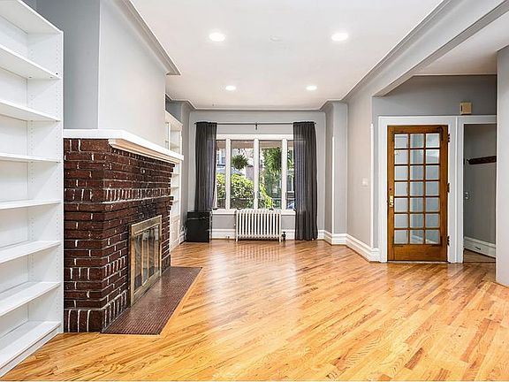 Then you step into the open and airy spacious Living Room with a beautiful hardwood floors, period brick wood burning fireplace, huge windows, high ceilings, built-in bookcases and you feel that you can kick off your shoes and relax.