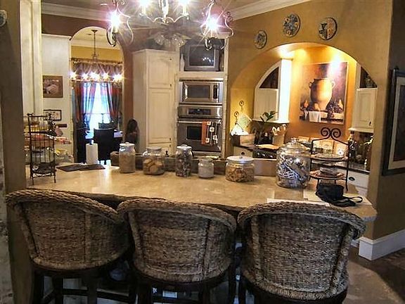 Frenchman's Bend! Owners are contractor/decorator & it shows! Cast stone FP & faux stone archway. Kitchen with Jen-Air SS appl.