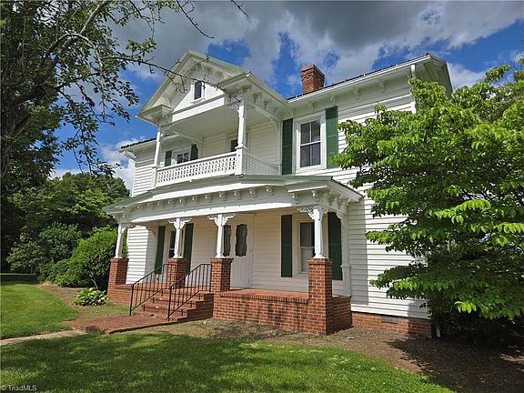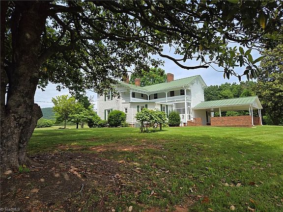 First time offered for sale in the 134 year history of this home. This Victorian Farmhouse sits on 1.46 acres and features a standing seam metal roof with decorative porch balusters and a multitude of corbels. The large foyer opens up to two large rooms on either side. Home has 9 ft ceilings throughout most of the lower level. There is a hidden staircase behind the kitchen that leads to a bedroom on the upper level. The second level has a front and back covered porch; two of the rooms open to the porch. A two car carport is attached at the back. Views abound from every direction - Sauratown Mountain to Hanging Rock and lush rolling hills in between. Mature trees are majestic - there are fruit trees, blueberry and blackberry bushes and a garden spot. Interior needs cosmetic updates. Selling AS IS.
