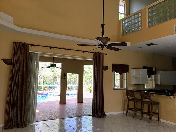 This private family homestead on over 2 acres is waiting for you to call it home! With 4 bedrooms and 3 full baths, this open floor plan with soaring ceilings leads to a covered/ screen patio pool/spa area for indoor/ outdoor living. Besides having an attached 2 car garage, there is a separate 2 car garage with a finished room for office/studio use. One bedroom & bath are located on the main level. Master suite features 2 large walk in closets, large master bathroom, and an atrium style nook with a doorway to a deck balcony for morning coffee and to enjoy the wooded yard views. Very private with plush landscaping, there's a path that leads to pond, it feels as if one is discovering a secret garden, but this pond pulls double duty, as it serves for the property irrigation system!