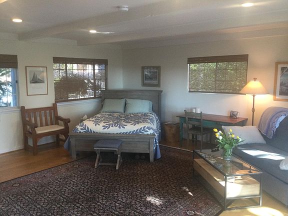 Nice, newly remodeled furnished studio at a private residence: - 3/4 acre view property in a quiet, low traffic, foothill neighborhood; - Private entrance; - Lots of natural light; - New bathroom with nice large shower; - New cabinets, counter and sink - Small stove and oven have been added (not shown in photos) - Hardwood floor with large area rug; - Large deck area with ocean view; - Shared laundry room and garage - Dedicated heating/AC; - 15 min from beach, UCSB and downtown SB; - Utilities, WiFI, basic cable included Month to month rental. Utilities/wifi/basic cable and garage parking for one vehicle included. No pets, smoking, vaping, guns, or drugs. $60 application fee for credit/background check.