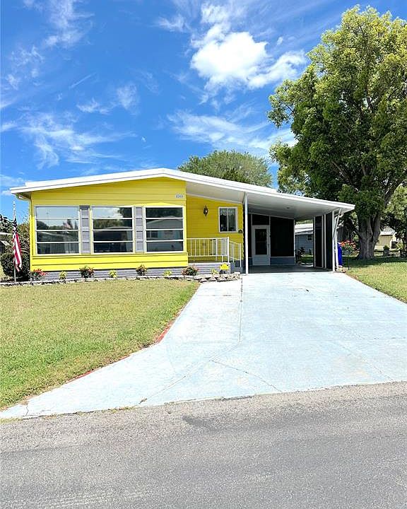 Motivated Seller! Seller offering a concession at closing for closing costs or upgrades! This is a wonderful, land-owned, roomy, move-in ready 2bed/2bath home in the beautiful and quiet 55+ community of Foxwood Lake Estates. This home offers new carpets in both bedrooms and new indoor/outdoor carpet in the front sunroom and the covered side porch at the entrance area to the house. The home is ADA compliant with a weather-shielded handicap ramp in the side porch area for easy access into the home as well as a newly updated ADA compliant bathroom. The master bedroom has a large walk-in closet and a master bath with shower and tub. There is also a separate laundry room and storage room located off the side porch for added convenience. Plus, this home is conveniently situated just a short distance from the serene lake and many of the amenities and activities at Foxwood Lake Estates. The large clubhouse has a billiard room, sauna room, fitness center, library, and houses a variety of social events. Out on the grounds is a heated pool, a covered spa/hot tub, lighted and covered shuffleboard courts, bocce and pickleball courts, corn hole, horseshoe pits, and a putting green. The fish-stocked lake is surrounded by a paved sidewalk with sitting areas to enjoy the peaceful surroundings. For the social side of life, there is a bowling and golf league, computer club, dinner and breakfast socials, bingo, floor exercise classes, pool aerobics, and the list goes on. Foxwood Lake is conveniently located to shopping, restaurants, and I-4. Make the move and enjoy your new home in a lovely community where you own the land! This is not a land-lease community.