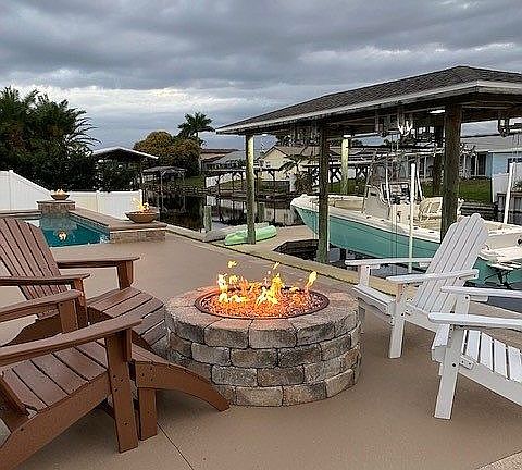Waterfront. Newer construction, built in 2015. Energy efficient. 10 ft ceilings, 8 ft interior doors. Large walk-in closet in master. Matching ceramic tile throughout entire house. Guest suite with en suite. Natual gas whole house generator. New seawall, dock and boat lift. Hurricane shutters with roll downs on porch. Full security system. Natural gas fire pit and fire bowls on pool. Custom cabinets in garage. Hybrid hot water heater. Natural gas range and dryer.