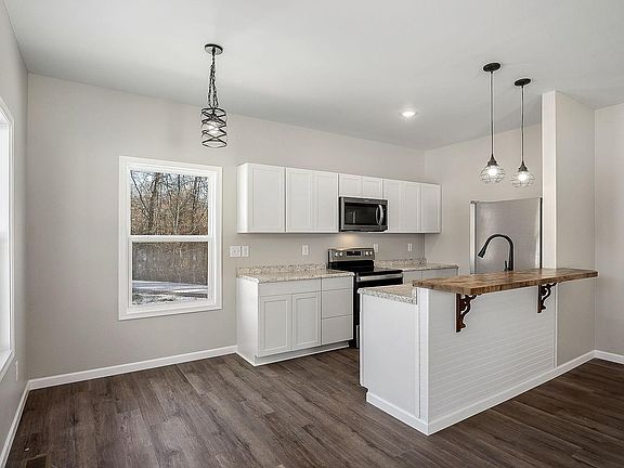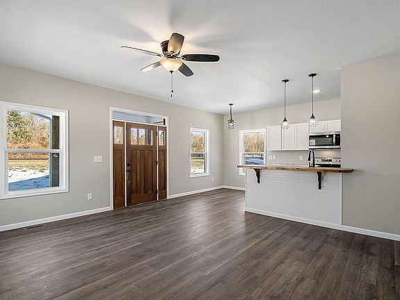 Looking for a cozy home in the country but not too far from town? Then, this is the home you want! 3 nice size bedrooms, 2 full baths, open concept eat-in kitchen & Livingroom, which is great for fellowshipping among family & friends while cooking. House has 9 ft ceilings, the hallway to bedrooms, utility area & bathroom is in back of living area that leads you to the back door onto the deck. Enjoy the quietness of the location of this home with a treelined back yard which includes a long driveway that wraps around to the back of house. Enjoy the feeling of peacefulness, after a long day at work, while on your deck gazing out into the woods, just so relaxing.... This home is brand new and ready for its first owners! Buyers/Buyers agent to verify all pertinent information.