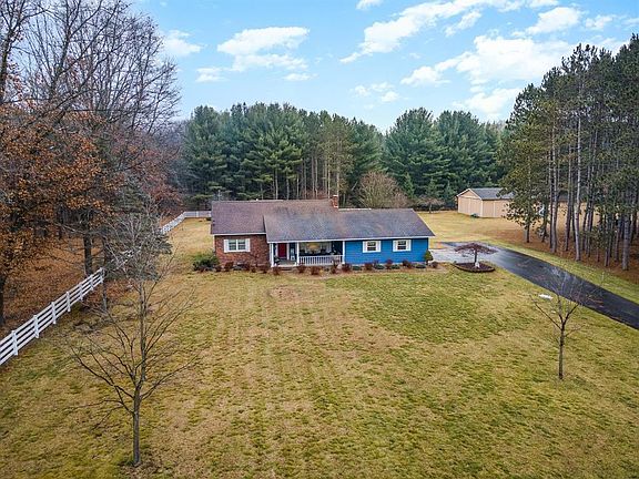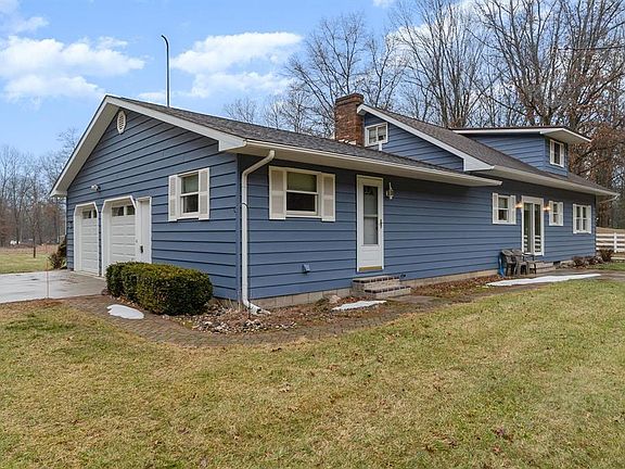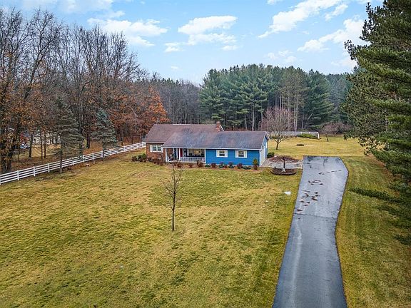 A gorgeous country setting on 2.34 acres with another 1 acre across the street! Located very near the all sports Pratt Lake boat launch too. Enter the long paved drive to the house sitting nicely off the road and drive past the large front yard on one side and beautiful stand of trees on the other. 2 car, finished & heated garage w/ epoxy floor leads you to the side door. The cobblestone sidewalk leads you to the covered concrete patio & attractive front entrance. The care and pride in this home is evident from the landscaping and curb appeal to the meticulous maintenance of the interior. Spacious kitchen with all appliances included opens up to a dining area with a slider to the back paver patio overlooking the yard & flower gardens. Carpeted living room w/ large picture window. 2 main floor bedrooms and a full bath. Main floor laundry room is extra large and there is also a pantry and 1/2 bath on this level. Upstairs you'll find 2 roomy bedrooms and another full bath. The full basement is unfinished and has a wood stove, cellar and a mechanical room. Offering hot water heat, natural gas & Spectrum internet. You'll love the 30x40 pole barn w/ 3 sliding doors for so much more storage! Build another one on the cleared acre of land across the street or enjoy family baseball games! Very nice home that won't last long so schedule a showing today.