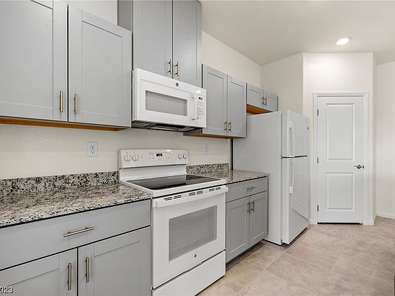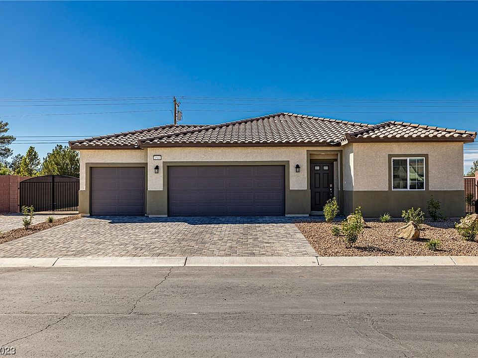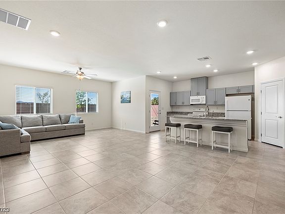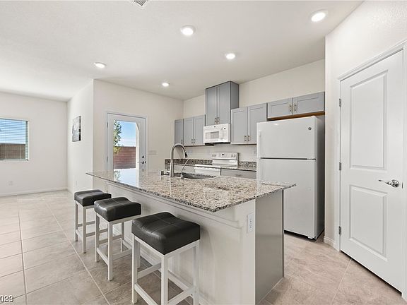 AVAILABLE NOW! Don't miss out on this rare resale in Riverstone. DR Horton home was just completed in JULY but seller has to go! The desert landscaping is complete and included a patio extension and RV/additional parking pavers added. Seller's loss is your gain.Quick possession.Spacious and open floorplan on this amazing ranch home.Property is a move-in ready, 3 bed/2 bath home with attached 3 stall garage.Kitchen island/ walk-in pantry, solid surface counters, & undermount sink. Laundry room - comes with washer and dryer. 2 bedroom, full bath in front and owner suite with walkin-in and bath towards rear. Home is eligible for reduced ADT security install. Upgraded white GE matching appliances from RC Willey. NO rear neighbors. GREAT Mt. Charleson view out front. LMA fee of $41
